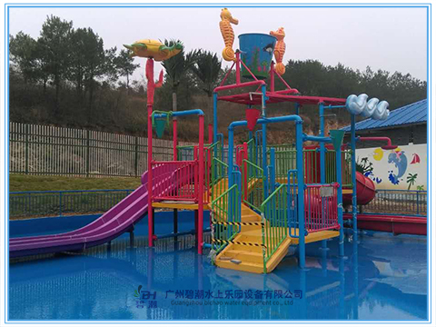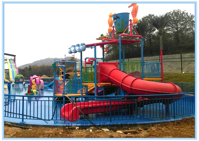 趣味中型水寨以海洋動物為主題配套玻璃鋼滑梯給小朋友們無窮的樂趣,給兒童帶來美好的回憶。